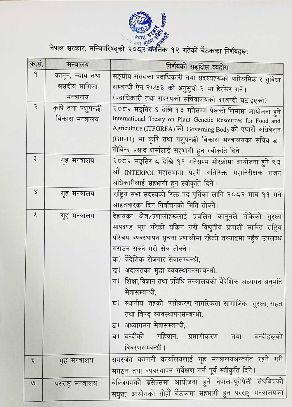 यी हुन् मन्त्रिपरिषद् बैठकका ११ निर्णय : राष्ट्रपति पौडेलको कतार भ्रमण स्वीकृत