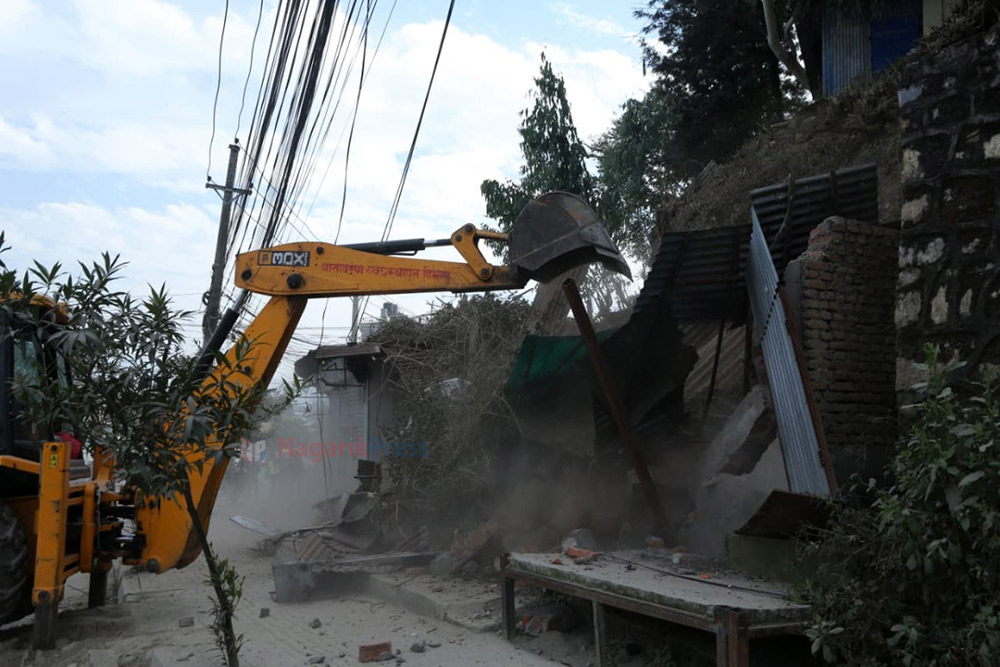 बल्खुमा बनेका अव्यवस्थित टहरा महानगरले भत्कायो (तस्बिरहरू)