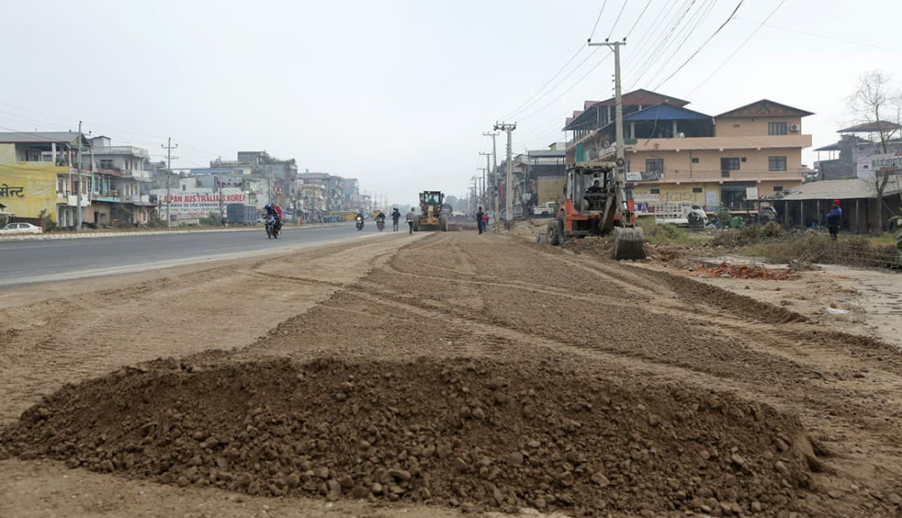 काठमाडौं । पूर्वपश्चिम राजमार्गअन्तर्गत नारायणगढ-बुटवल सडक विस्तार आयोजनाको दाउन्ने क्षेत्रमा कामले तीव्रता लिएको छ । विस्तारका कारण सवारी आवागमनमा असुविधा भए पनि स्थानीय सरोकारवालाहरूसँग समन्वय गरी काम अघि बढाइएको छ ।