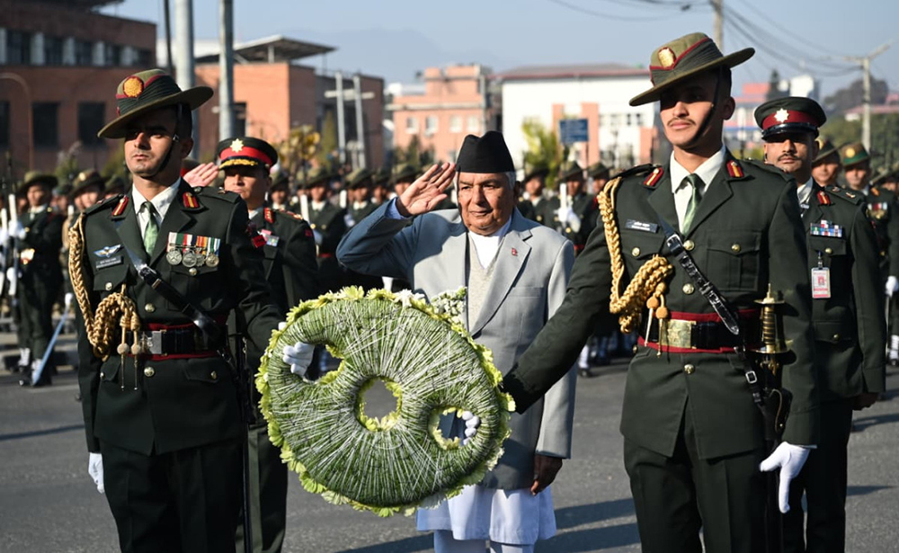 राष्ट्रपति पौडेल कार्यक्रम स्थलमा पुगेको बेला नेपाली सेनाको एक टुकडीले उनको सम्मानमा सलामी अर्पण गरेको थियो ।