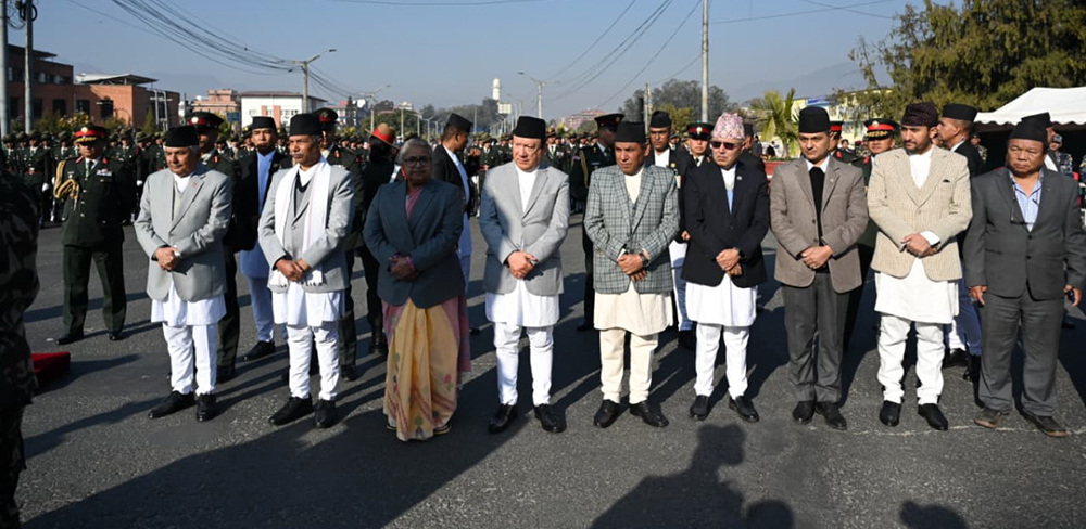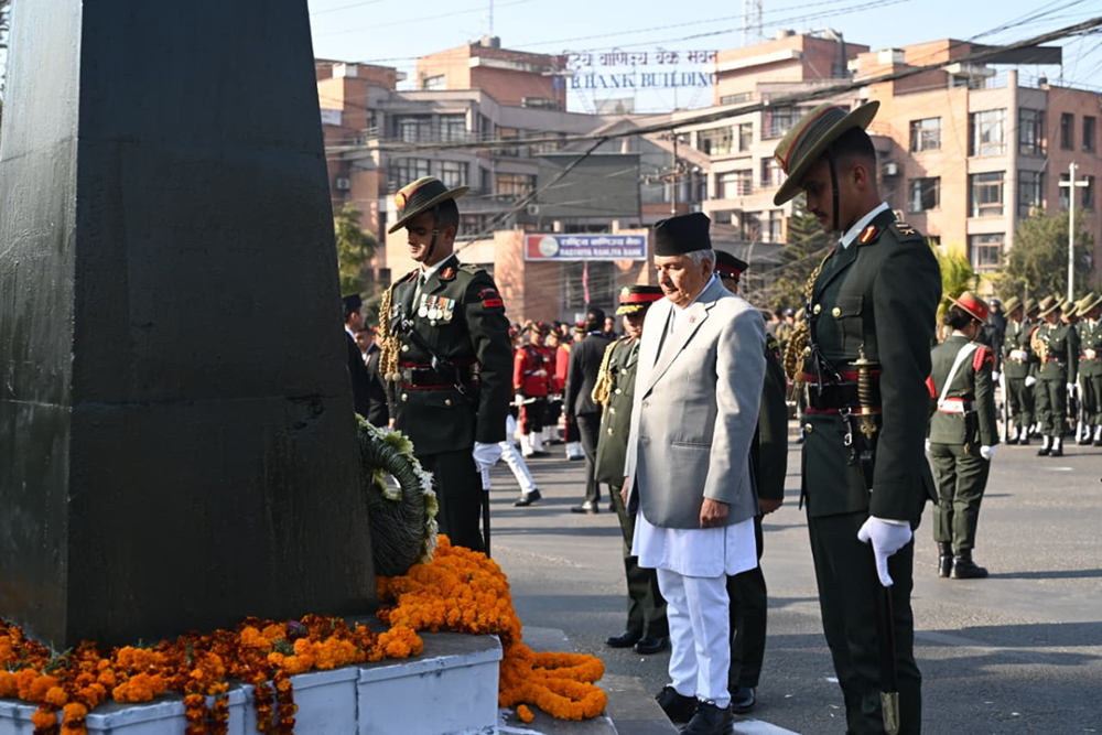 राष्ट्रपति पौडेल कार्यक्रम स्थलमा पुगेको बेला नेपाली सेनाको एक टुकडीले उनको सम्मानमा सलामी अर्पण गरेको थियो ।
