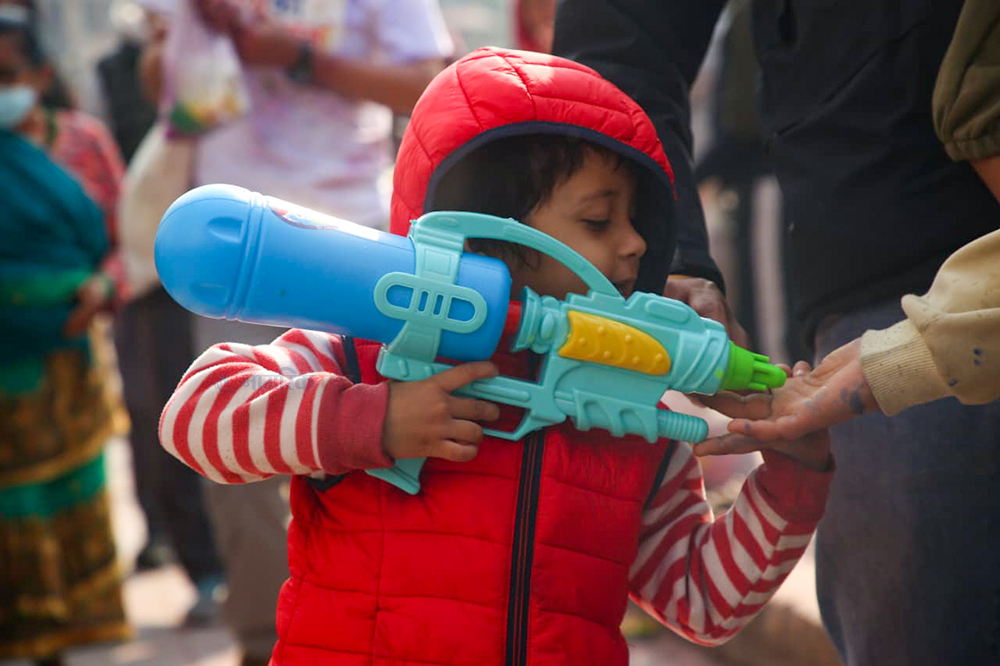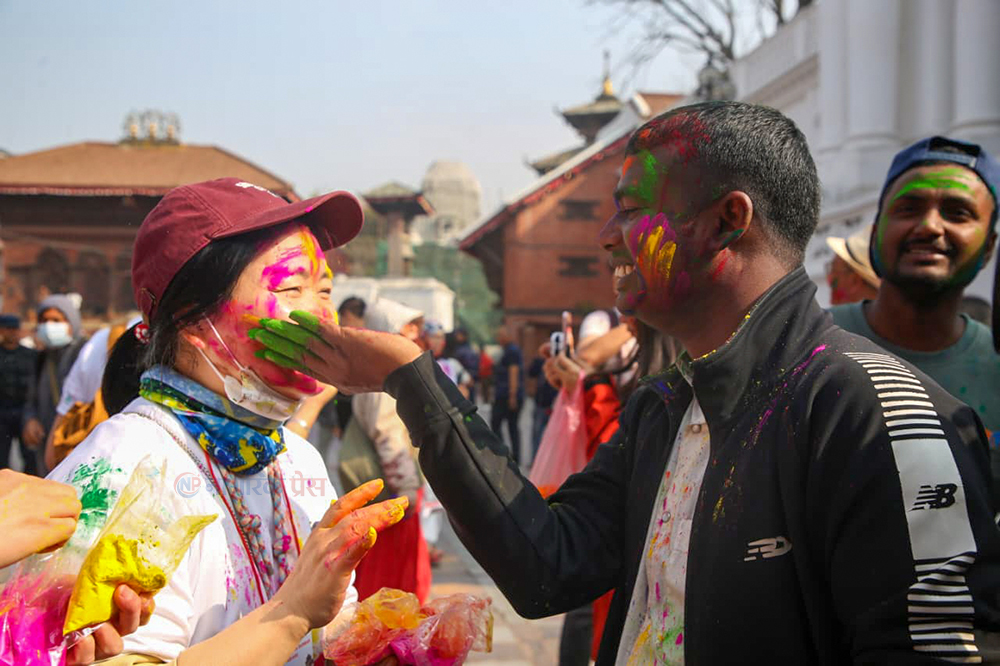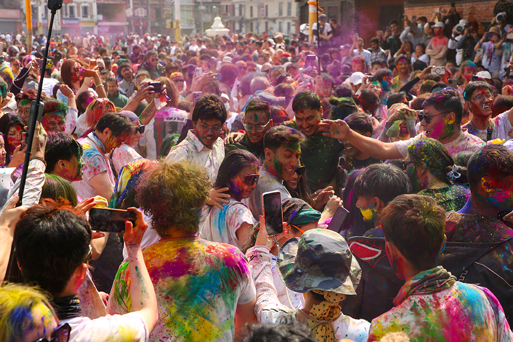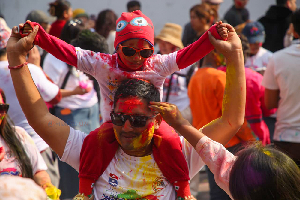 काठमाडौं । वसन्त ऋतुको आगमनसँगै आपसी मेलमिलाप र सद्भावनाको सन्देश लिएर आउने होली पर्व सोमबार काठमाडौं उपत्यकासहित पहाडी र हिमाली जिल्लामा हर्षोल्लासका साथ सर्वसाधारणहरू एक आपसमा रङ, अबिर लगाउने र नाच गान गरेर मनाइरहेका छन् ।