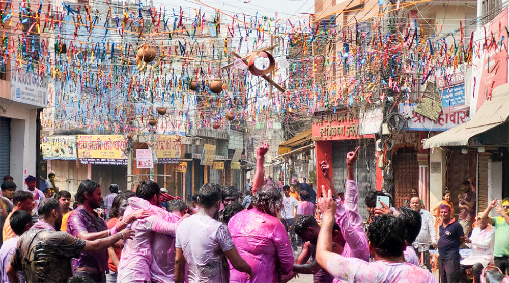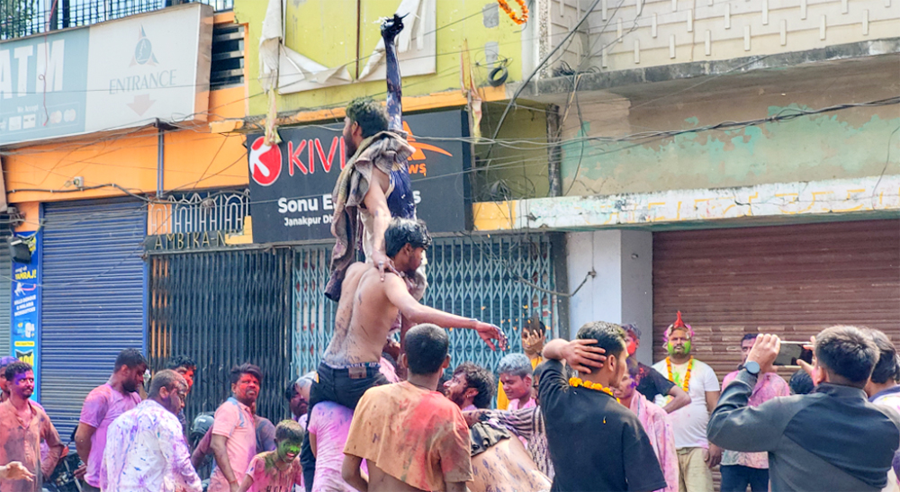 जनकपुर । जनकपुरधामसहित पौराणिक मिथिलाञ्चल क्षेत्रमा आज धुमधामका साथ होली पर्व मनाईदै छ । भारत र नेपालका मिथिलाञ्चल क्षेत्रमा पर्ने स्थानहरुमा पूर्णिमाको एकदिन पछिमात्र होली मनाउने परम्परा रहेको छ । यस अवसरमा जनकपुरधामका विभिन्न स्थानमा मट्का फोड्ने कार्यक्रम समेत गरिएको छ ।