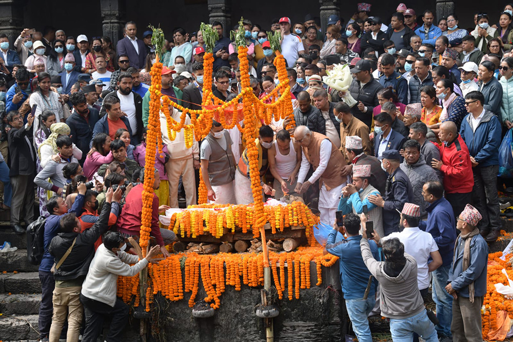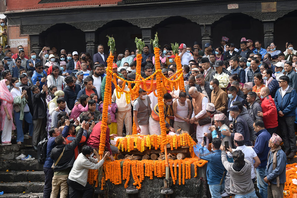 काठमाडौं । नेकपा एमालेका अध्यक्ष एवं पूर्वप्रधानमन्त्री केपी शर्मा ओलीका पिता मोहनप्रसाद ओलीको पार्थिक शरीरलाई पशुपतिमा अन्त्येष्टि गरिएको छ । उनको पार्थिव शरीरलाई आजै पशुपति आर्यघाटमा दाहसंस्कार गरिएको हो ।