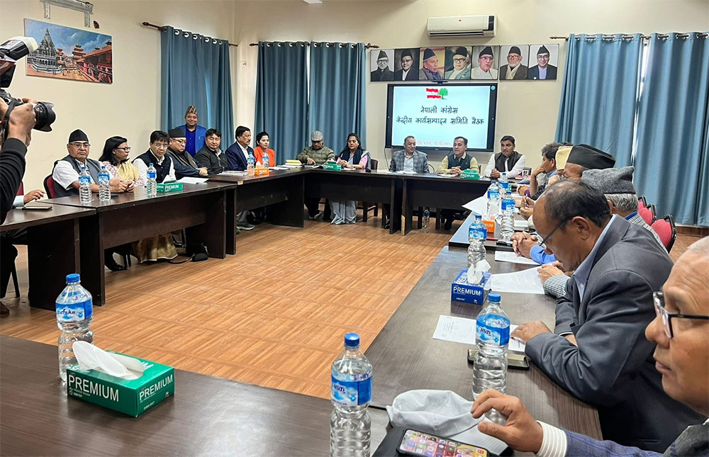 काठमाडौं। प्रतिनिधि सभाको निर्वाचनपछि पहिलो पटक नेपाली कांग्रेसको बैठक बसिरहेको छ । पार्टी केन्द्रीय कार्यसम्पादन समितिको बैठक अहिले पार्टी केन्द्रीय कार्यालय बीपी स्मृति भवन, बीपीनगर, ललितपुरमा बसिरहेको हो ।