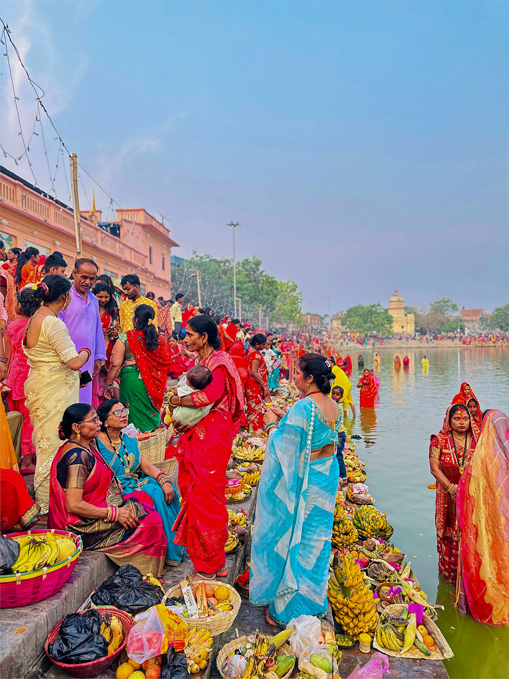 गोलबजारका विभिन्न पोखरी तथा नदी किनारहरूमा बिहानैदेखि व्रतालुहरू भेला भई अस्ताउँदो र उदाउँदो सूर्यलाई अघ्र्य अर्पण गरेका थिए ।