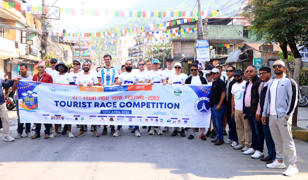 पोखरा । पोखराको लेकसाइडमा आयोजित फेवा नयाँ वर्ष महोत्सवको अवसरमा पर्यटन दौड सम्पन्न भएको छ । नयाँ वर्ष २०८३ को स्वागतार्थ आयोजित यस दौडमा स्थानीय बासिन्दा, पर्यटक र खेलाडीहरू गरी ३५ जना भन्दा बढीको सहभागिता थियो ।
