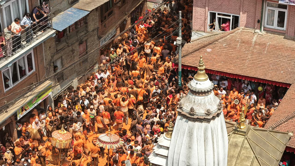काठमाडौं । मध्यपुर थिमिका नेवार समुदायले आज सिन्दूर जात्रा मनाएका छन् । हरेक वर्ष वैशाख २ गते मनाइने बिस्का जात्राअन्तर्गत आज सिन्दूर जात्रा मनाएका हुन् ।
