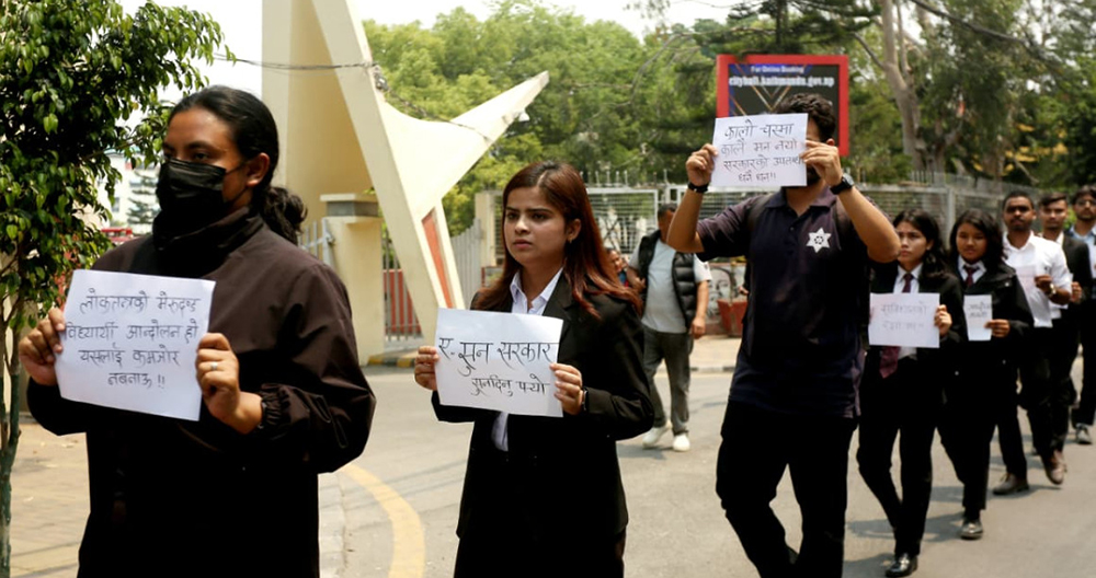 सुन सरकारले सुनिदिनुपर्‍यो भन्दै कानुनका विद्यार्थी सडकमा (तस्बिरहरु)