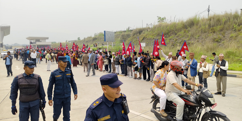 पूर्वराजा ज्ञानेन्द्र शाहलाई पोखरा विमानस्थलमा गरियो स्वागत (तस्बिरहरु)