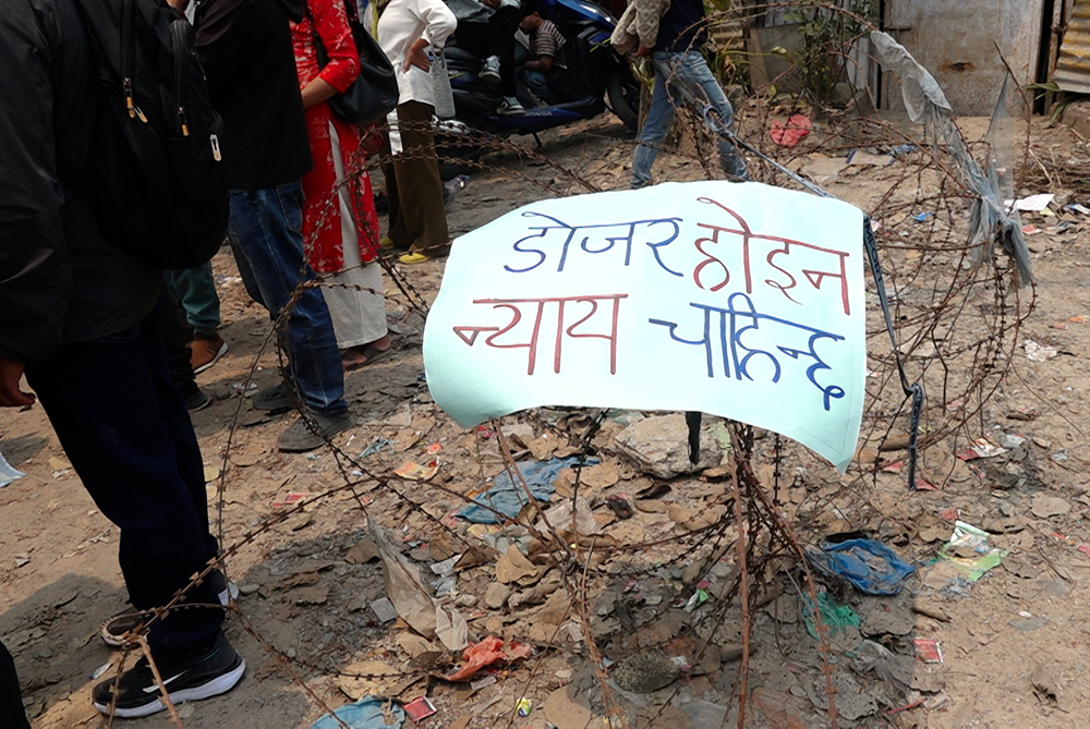प्रदर्शनमा पुगेकी एक युवतीले भनिन्, ‘पूराना दलहरुले जसरी सुकुम्बासी भूमिहीनहरुलाई भोटर बैंक बनाए । त्यसैगरी यो सरकारले पनि पूरानै दलहरुको संस्कार अवलम्बन गरिरहेको देखियो । सरकारले भूमिहीन सुकुम्बासीहरुलाई डोजरको आतङक देखाएर राज्यसत्ताको शक्तिको आडमा भूमिहीन सुकुम्बासी बस्तीमाथि डोजर चलाउनु अन्यायपूर्ण छ । मानव अधिकारको पनि उल्लङ्घन गरेको छ । संविधानले हरेक नागरिकको आवासको हकको सुनिश्चित गरेको छ । सम्मानपूर्वक बाँच्न पाउने अधिकारको सुनिश्चित गरेको छ । त्यसैले यो सरकारले संविधानको मुटुमा डोजर चलाउने काम गरेको छ ।’